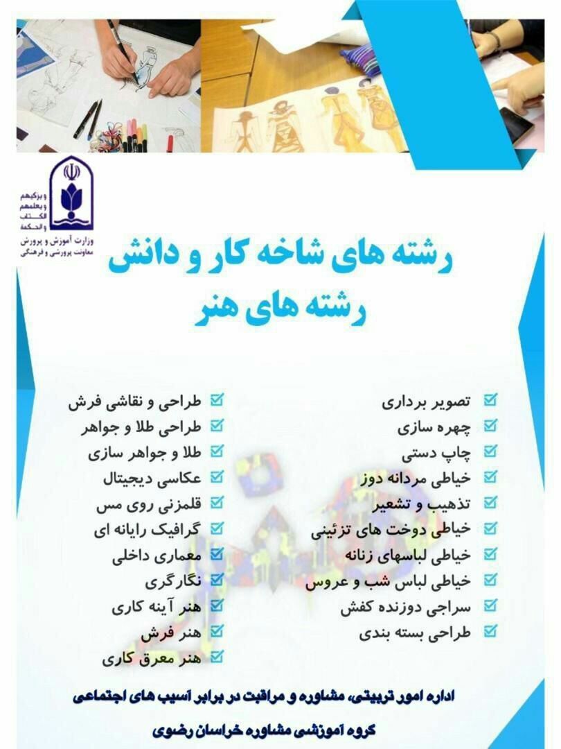 دانلود پوستر معرفی هنرستان های کاردانش دخترانه شهر مشهد 1403 (شامل: آدرس، شماره تلفن و رشته های موجود در هر هنرستان به تفکیک نواحی)
